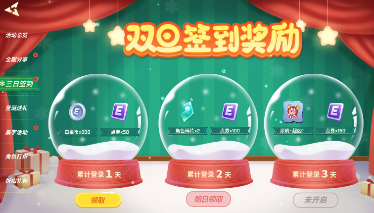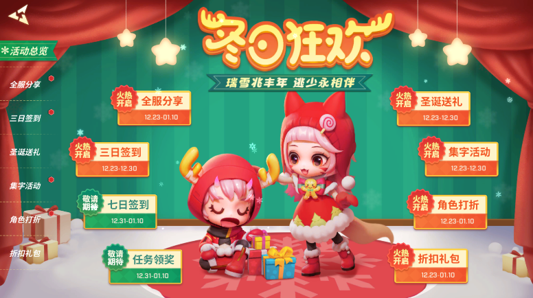 双旦活动分为两个阶段,第一阶段是12月23日至12月30日,第二阶段是12月31日至1月10日。每个阶段都有不同的活动和奖励,我们需要根据不同的活动类型,选择合适的玩法和策略,才能最大化地收获双旦的福利。