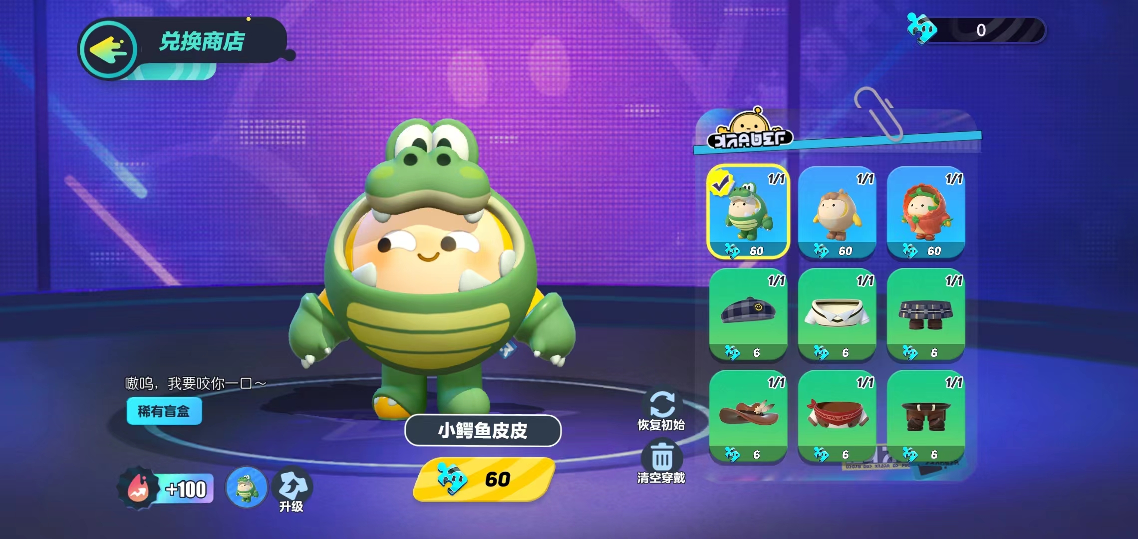 要用瓶盖来兑换小鳄鱼点击右上角的活动图标,进入活动中心。在活动中心的页面,找到“瓶盖兑换”这一栏,点击进入。在瓶盖兑换的页面,可以看到小鳄鱼的图标,以及它所需要的瓶盖数量。目前小鳄鱼需要60个瓶盖才能兑换。如果你已经拥有足够的瓶盖,就可以点击小鳄鱼的图标,进行兑换。兑换成功后,小鳄鱼就会出现在你的皮肤库里,你可以随时更换使用。