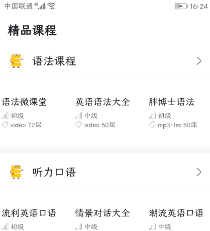 作为一个适合零基础学习英语的软件来说,它能够更好地帮助学习口语,里面有很多干货的课程,在没有任何经验的时候,可从零基础学习具备丰富的课程内容。还有名师授课,不管自己是哪一个阶段的人,通过该软件都能够很好地学习好英语,特别适合对英语学习没有规划的人群。