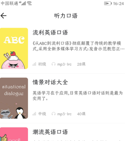这是非常适合学习英语的人群下载的,除了拥有着很高的用户下载量以外,它也是一个适合各个人群学习的,即使是零基础也能够学习好英语。里面包含成套的课程以及mp3课程资源,为学习英语提供保障,除此之外还有初级英语、高级英语、中级英语、英语口语等等特色功能。