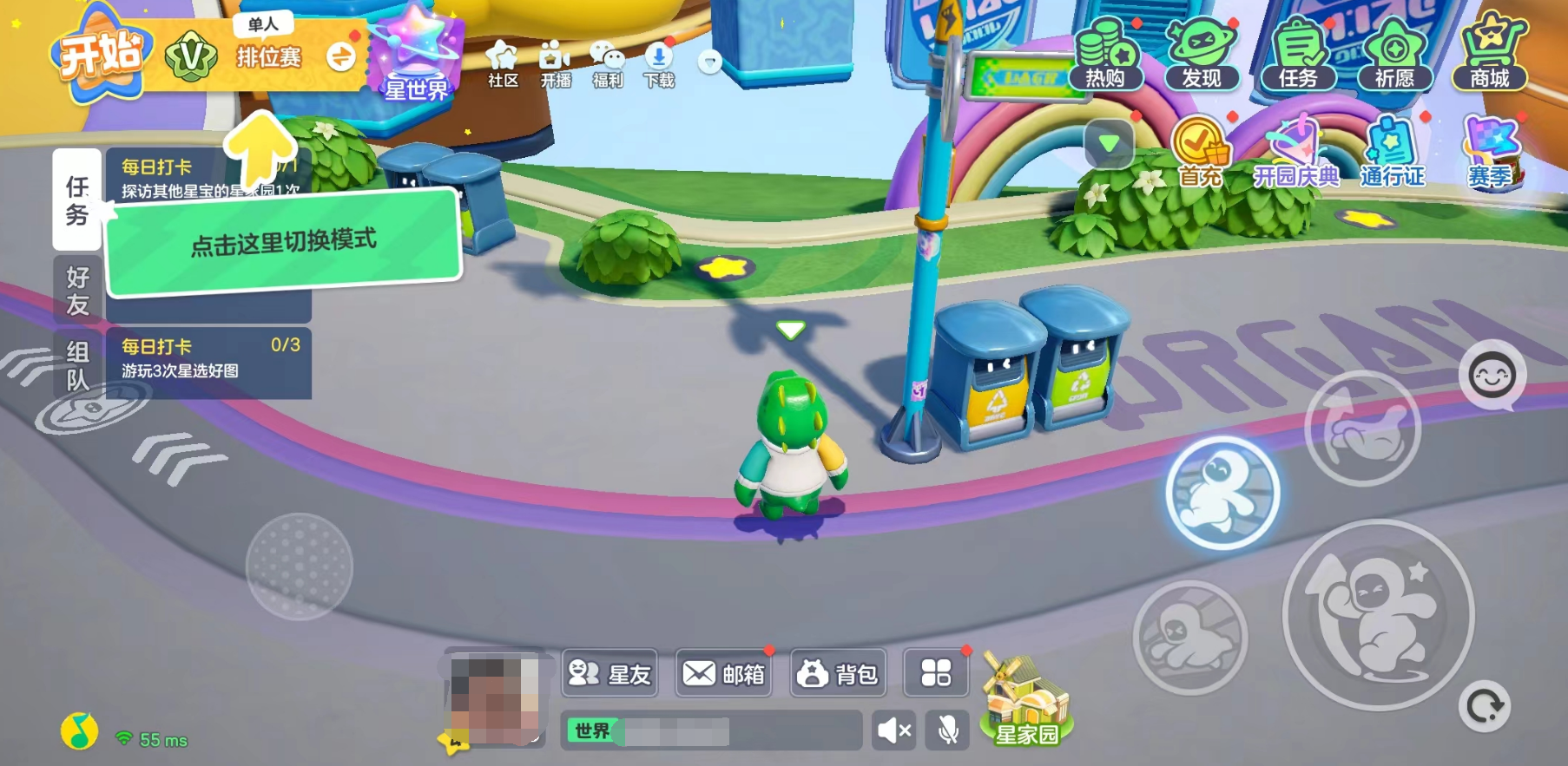 在者就是元梦之星结合了腾讯的多平台互动游戏体验也让玩家们感觉到极强的亲切感,虽说元梦本身都刚刚推出,但是元梦内的好有都能从我们的社交软件中完美复刻,能够在新游中营造出很强的社交亲切感,实现了真正的跨平台互通。游戏的主界面是一个社交广场型地图,玩家可以在这里自由探索,利用地上的道具、场景中的设施与其他玩家互动,也可以在这里进行对战匹配,体验不同的游戏模式。