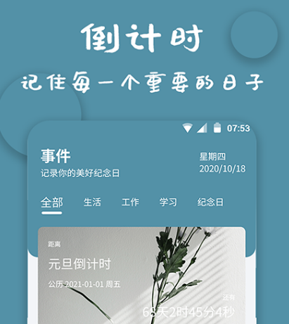作为一个高效的计时器,相信很多人在生活当中都会使用计时器,之所以说它是一个既是软件,也是因为在生活当中有一些事情值得记录的时候,就会通过软件标记下来。该软件可以起到一个提示的作用,根据事件时间来进行倒计时,还可以以时间限制记录事件,轻松添加倒数日,让每个人记住生活当中重要的日子。