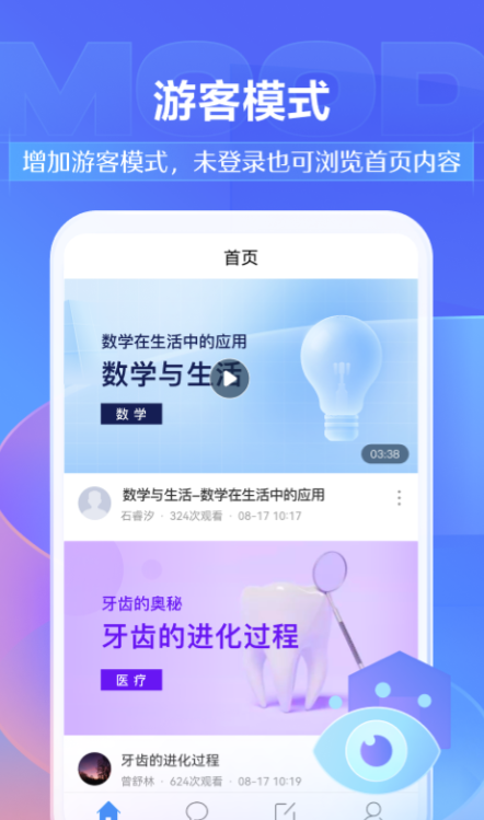 很多学校所指定的一款手机上课应用软件,软件是能够支持自学网课功能的,加入到对应的搬几就可以按照所需要的专业进行学习了,新增的游客模式更加的方便。