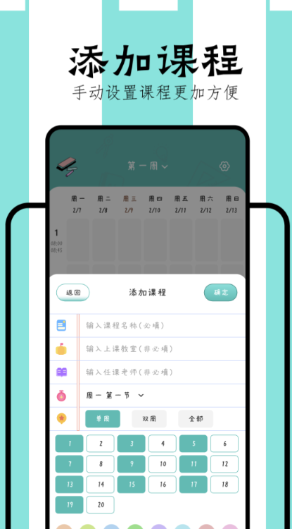 软件的设定十分的简洁大气,操作起来也没有任何的难度,根据自己的专业和课程需求进行记录和设定,每一个单元格都可以选择自己喜欢的颜色。