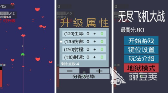 这一款能够让玩家一边战斗一边提升属性的游戏有着非常完善的升级机制,而且在战斗过程中还能看到自己距离下一个等级需要消灭多少战机,非常的人性化。在游戏中,更是可以利用不同的属性加成来提升战机的能力,无论是能够增加射程的属性还是可以提升生存能力的生命加成都应有尽有。