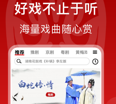 戏曲也是音乐的一种好戏,不仅仅只是聆听,还可观赏视频,其中有丰富的类型,比如看戏,听戏,看小说,说相声等。