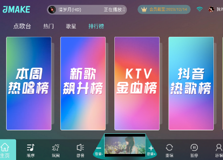 集体看视频,听歌曲,唱歌为一体的应用海量高清mv以及专业k歌曲库,用户随时随地感受沉浸式歌唱体验。有经典老歌、抖音神曲、演唱会、广场舞,各种内容前面包含老少皆宜。支持双屏显示微信点歌音效调节,另外多人开拍也能使用,该平台满足多种不同的需求,快速开唱。