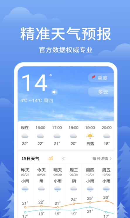 软件覆盖了全国的区域城市,根据大家当前定位来提供精准的天气状况,同时也可以将你经常去的城市加入到列表中,这样就方便查询,当遇到恶劣的天气变化时候,就可以提前的预警。