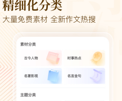 对于学生来说作文是非常困难的,无论中小学哪个学习阶段都是如此,该平台来帮你,使用这款软件让你在写作文时不再跑题,几亿用户都在使用独特的写作神器。之前想要积累短语句以及词语需要使用摘抄本,这属于超大的摘抄本,有好词好句、经典人物,还有各种高分写作技法,每天零点更新,按照当前中高考常见内容,有30多种不同的精细分类素材全面覆盖。
