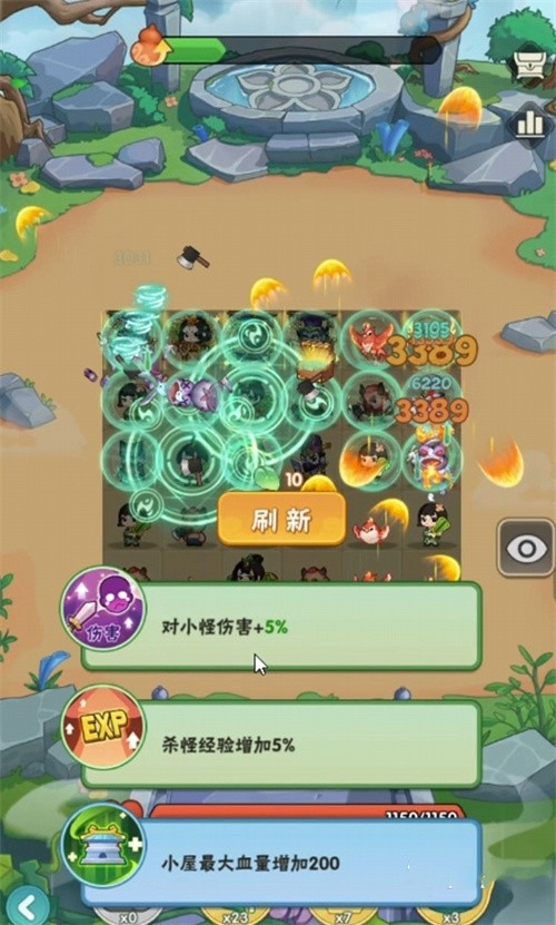 当我们的金币不足时,我们可以使用增加金币的技能,来提升我们的资源优势;当我们的血量不足时,我们可以使用增加血量的技能,来提高我们的生存能力;当我们的伤害不足时,我们可以使用增加伤害的技能,来提升我们的输出能力。此外,游戏中还有一些道具,比如棋盘增加一行、小屋每增加100血量加5%伤害等,这些道具也可以给我们带来很多的帮助,我们要合理地使用它们,以增强我们的战斗力。