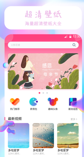 带有海量的手机壁纸、主题以及表情包可以直接使用,通过获取系统相关权限可以完成一键替换,不需要一个个手动设置了。软件中素材的更新速度也是很快的,而且都是无水印的高清大图。