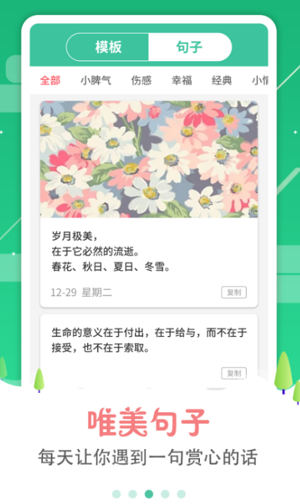 在这里有很多方面的设计师能够给你足够的灵感,并根据你的构图来提供参考的案例,能够在图片中添加各式各样的文字以及格式,分分钟将图片打造成你想要的样子,如果暂时没有灵感的话,还能够利用替换图文模板来进行一键式打造,可以直接将另外一张图片上的文字搬运到新的图片当中。