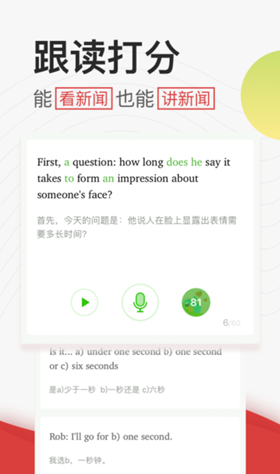 软件允许我们跟随听力教材来进行跟读,从而系统会自动识别并且为我们进行评分,让大家能够在练习听力的同时提升口语表达能力,是不是比较棒呢!