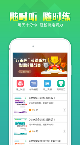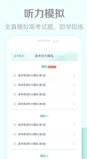 这款软件主要就是针对高考备考的阶段来说用了,每天都会更新一些听力的模拟训练题,都是跟高考同一规格的。除了听力之外还带有各种题型的模拟训练和解题思路解析,还是很实用的。