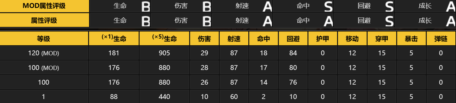 ump9的人形的属性来说伤害和命中都不高,但她的射速和回避都很高,这使得她可以在战斗中快速地输出伤害,同时也可以有效地躲避敌人的攻击。ump9的暴击率和护甲都很低,这意味着她不适合与高伤害或高穿透的敌人对抗,需要注意保护自己的生命。技能方面,第一个是主动技能烟雾弹,开场后6秒,每隔16秒,向前方扔出一个烟雾弹,持续5秒,烟雾弹覆盖范围内的敌人命中和移动速度下降40%,同时我方全体回避提升22%。人形特殊装备:UMP UX外骨骼,提供回避 35,暴伤 25%的属性加成。