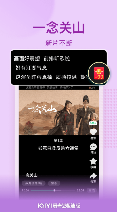 在爱奇艺原版播出的电影和电视剧在这里都会同步更新,并且比较早推出的一些剧目前是采取的免费观看,为的就是能够让用户提前体验到极速版当中的便利和特点。