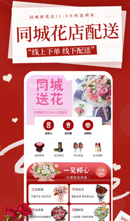 超级有个性的一款手机订花应用软件,根据大家所提供的要求去记性设计和搭配,保证让每一给收到的用户都满意,指定的配送时间让你的关爱在准确的时间里边抵达。