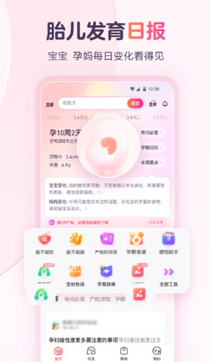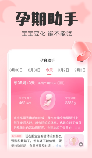 会每天帮助我们记录生活以及身体指标状态,而且会结合孕期、气温、天气等为我们提供衣食住行的建议和参考,更是带有更多育儿的知识供大家获取和学习。