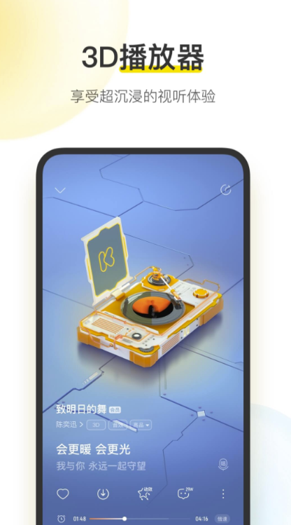 超级炫酷的音乐播放器,所包含的音乐种类十分的丰富,方便大家的畅听和下载,各种不同音质的播放模式大家可以尽情的选择,3d的播放器给伙伴带来不一样的畅听体验。