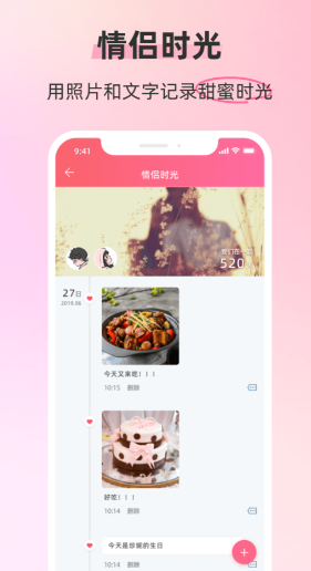 支持图文、视频的即时上传,可以将我们平时遇到的一些事件详细记录下来,而且还带有纪念日、手机状态查看等多种强大功能,在这里建立甜蜜小家。