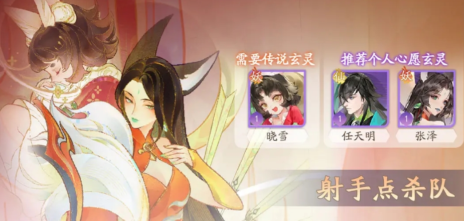 ②张泽 晓雪 孙浦和 任天明 青鸟:该阵容是射手点杀队,队伍的核心是张泽,它通过二技能可以在攻击远方敌人时有一定几率能发射两只箭矢,如此一来,对付单体敌人的伤害就会直接得到翻倍,同时四技能还可以在对付落单敌人时提高自己的属性,因此其对单秒杀的能力非常出众。然后晓雪还能通过技能来进一步增幅张泽的攻速与暴击,同时有一定练度后还能通过生成庇护区域来给予范围内的队友免控和回血,孙浦和的话则能在变身巨猿后将突进的敌人抛向版边,很好的限制了敌方刺客对张泽突脸,任天明则可以和张泽一起追击同一目标,配合青鸟的回能可以加速对对手的单秒。
