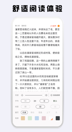 软件倾力为我们打造了优质的看书体验,自带的阅读器会自动对文章内容进行排版美化,可以自动清除空格、空行,并且支持多种样式选项,能够自己设置字体字号等。