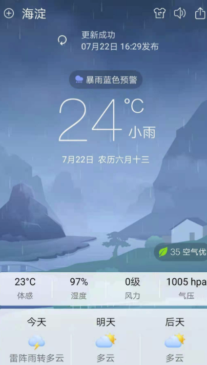 个性的动态图给大家打造独一无二的天气预报图像,刮风下雨等天气效果非常的逼真,对于恶劣的天气还会发出预警提示,帮助各位小伙伴提前做好防护措施的准备。