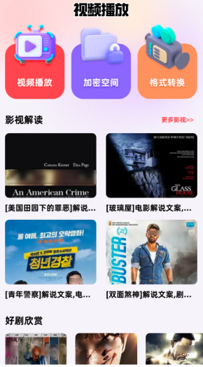 带有多种视频播放模式,可以扫描本地视频或者是粘贴在线视频解析,平台本身也带有大量的影视剧作品,还能够创建加密空间、隐藏播放记录,是不是很给力呢。