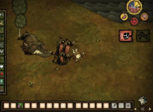 《饥荒》也是一款单机生存类游戏,游戏的画风比较暗黑,背景也设定在末世中,乍一进入有种很荒凉的感觉。游戏是横版2d模式,你可以操纵自己的角色进行前进后者后退。玩法也很简单,就是在游戏中寻找食物和打造装备,保证自己能够活下去。总得来说是一款比较有挑战性的游戏,喜欢的玩家可以尝试一下。