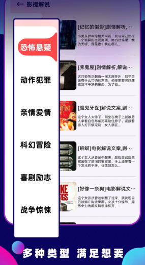 对影视剧作品的分类还是很细致的,不仅带有一些科幻、玄幻、偶像剧作品,还拥有海量的冒险、爱情、动作片,其中独到的解说内容也值得我们阅读,可以对剧情有更加深入的了解。