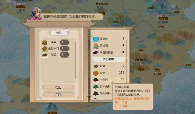 你可以通过与长老交谈,了解掌门的喜好和位置,然后去寻找他们,送上你的礼物,通过宗派交易的界面,查看其他宗派的需求,它们会随机发布一些需要的药品或者物品,你只要把它们放到交易区,就能完成需求,每完成一次需求就能增加一点人情值。