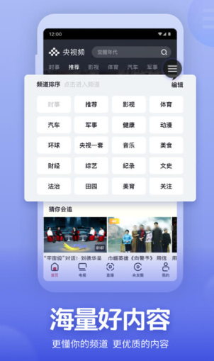 官方出品的一款综合类视频软件,在直播栏目中可以直接观看到一些王牌的节目和栏目,也可以自己手动去更换频道进行播放,软件还提供了不同类型的丰富视频内容可以获取。