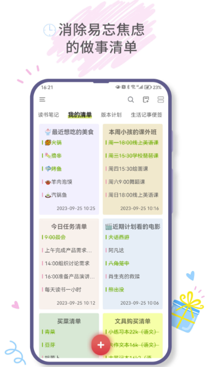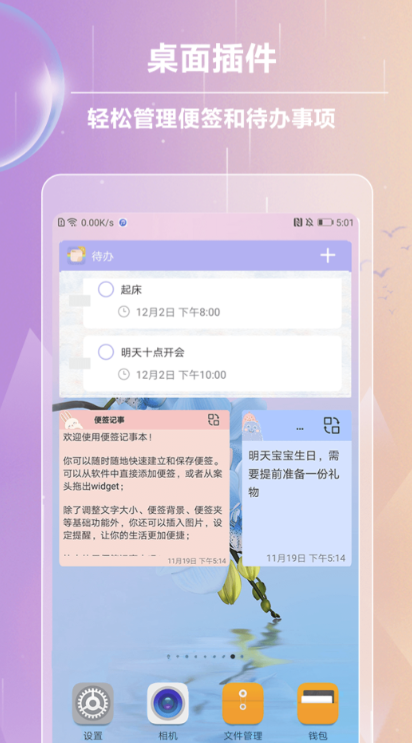 软件的分类十分的详细,看似一款单一的便签app但是它所包含的操作也是十分专业详细的,自带的备忘录提醒,各种纪念日的备注等,一键就可以同步,兼容性也超高。