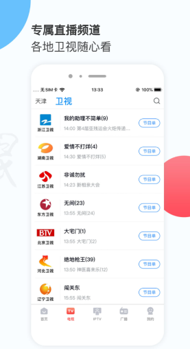 汇聚了海量优质的电视频道供大家一键点播,在软件内还能够看到详细的节目单,可以自由选择回看往期内容还是预约接下来来的节目,整体操作比较方便,清晰度也值得信赖。