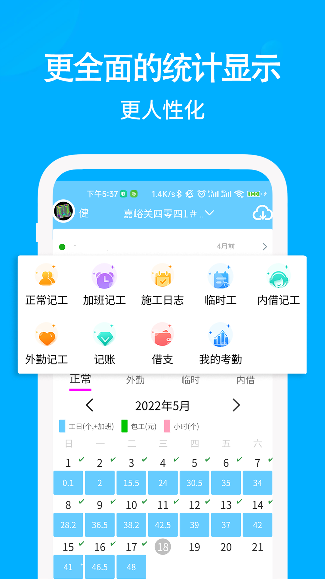 这款软件以多样的功能而著称。除了基本的考勤打卡外,还支持请假申请、加班记录等管理功能。通过云端同步,管理层可以随时随地查看工地上的各项考勤信息,提高了决策的灵活性。
