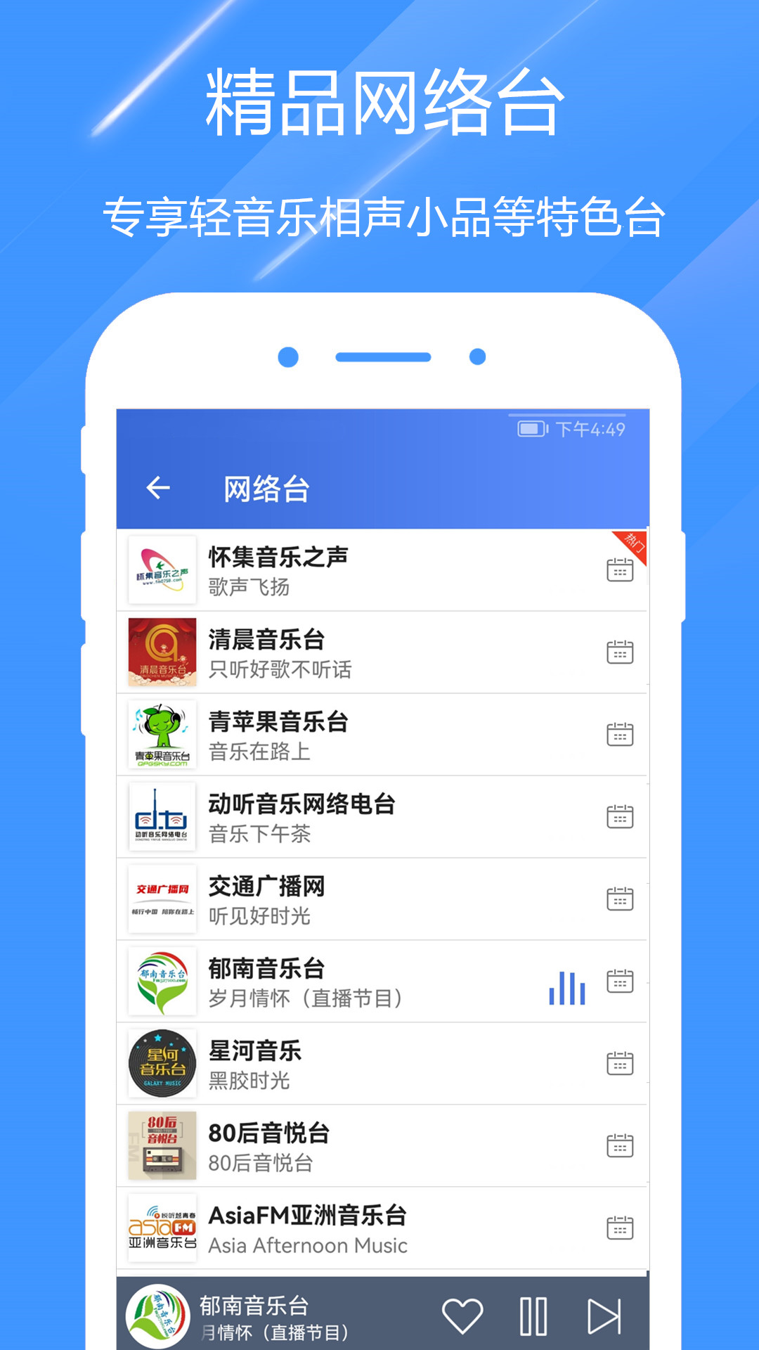 软件为大家覆盖了大量的电台节目,各位到时候可手动去调频,同时也能去选择喜欢的分类来收听,不论是新闻热点还是歌曲音乐,它都能有一个不错的表现,不间断的直播服务也会在里面为大家开放。