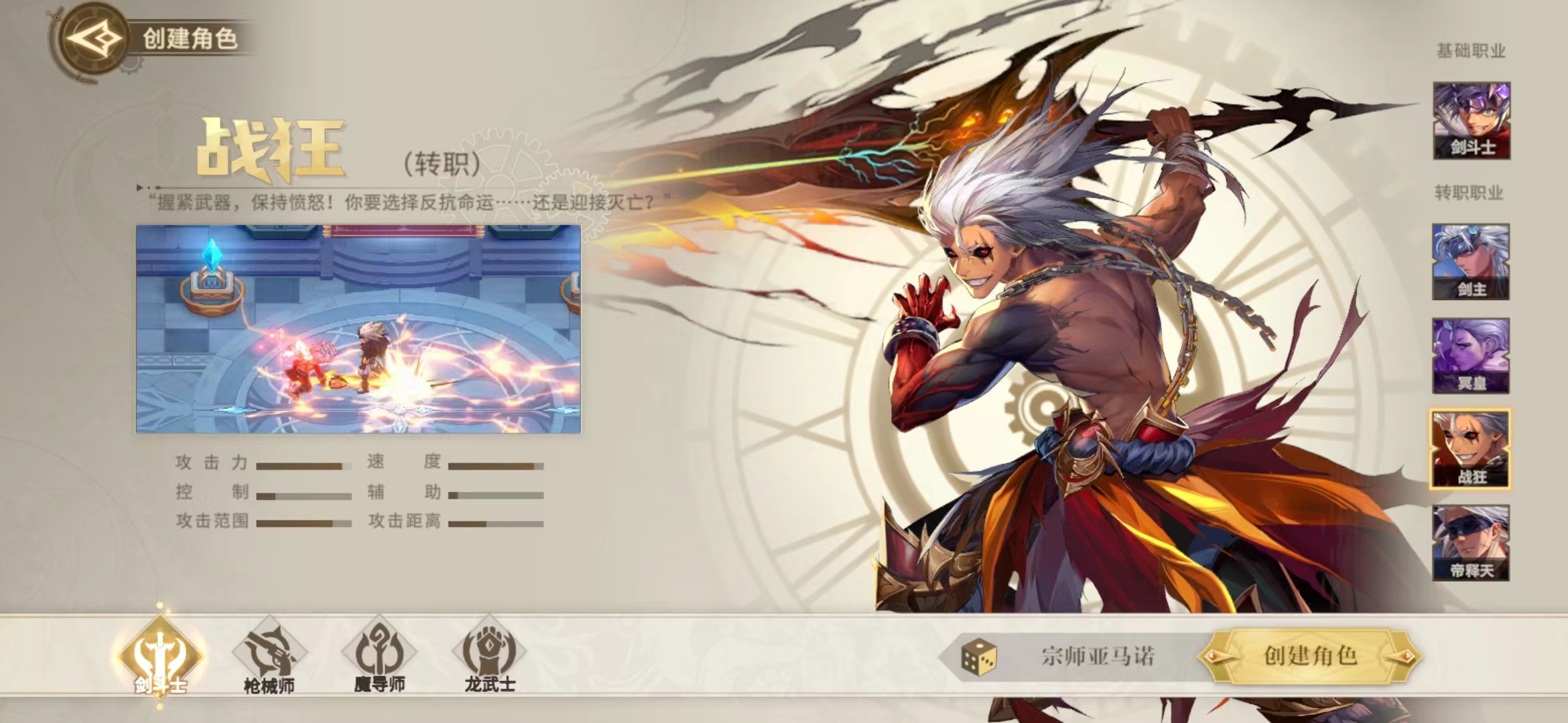 第二个职业也是很多玩家会选择的一个强力职业,在游戏中也是剑斗士转职来的,这个职业就是战狂,这个职业其实也是新手推荐转职的强力职业,因为在入门之期选择剑斗士的玩家很多,在操作上面这个职业完全不会复杂,而且在近战的时候会经常产生暴击,这也是大家使用战狂的时候可以带来的爆发输出,如果是新手玩家的话其实在上面建议大家可以选择这个转职的,效果很好的同时易上手。