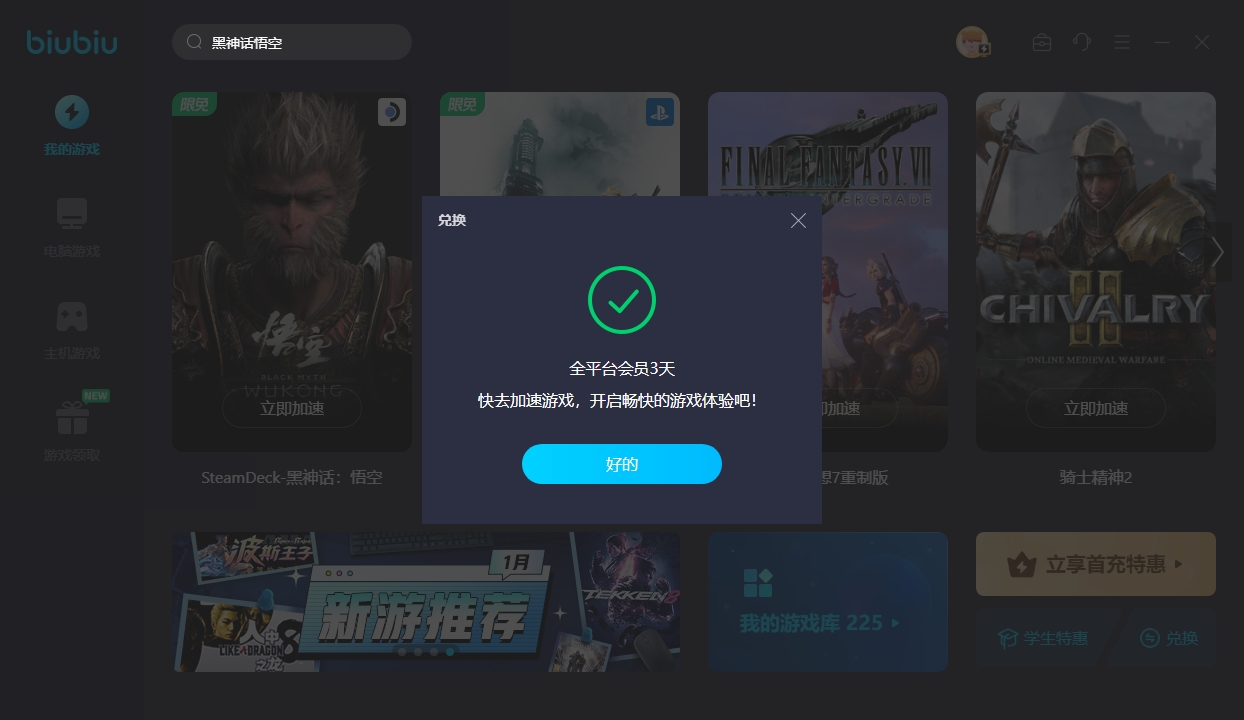 此外该加速器的福利也很齐全,比如新用户就有24h的免费加速福利给到各位,同时大家还能通过首页的兑换窗口来输入【biubiu不卡顿】,这样就能成功兑换3天的加速时长,这个不论是新人玩家还是老用户都可以去使用哦,如此一来就能去免费的使用它,感受它带来的效果究竟如何,更是开放了加速以后的动态信息展示,像网络的延迟数据和丢包率等等,这些都是能让大家去实时追踪自身网络具体状况的。