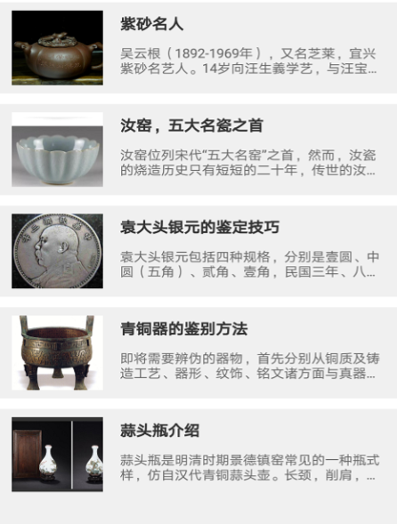 大家可以将手中的字画,玉器,古币等各种不同的古董放到这个平台上边进行鉴定,这里有专业的老师,都是有着多年的操作经验,另外还会给一些初学者提供相应的教学视频软件。