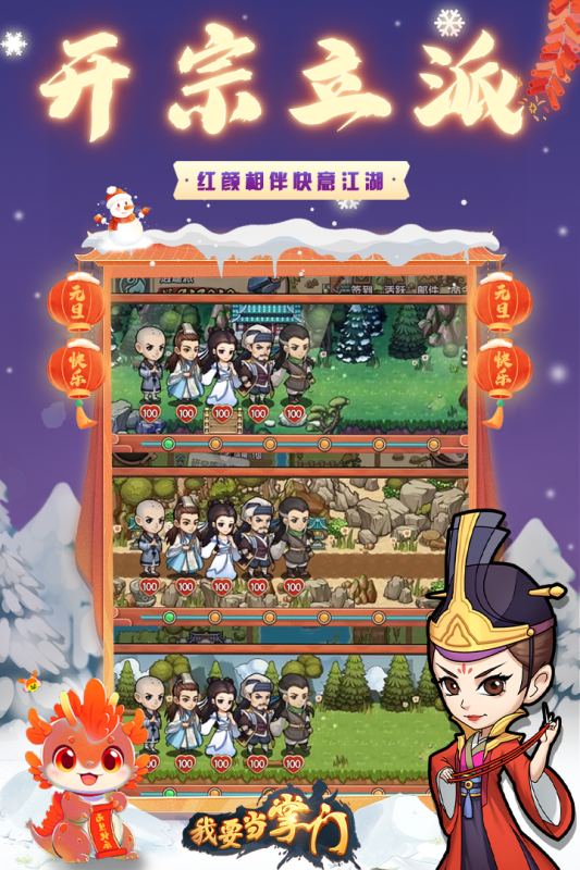 这款《我要当掌门》和其他的动作类游戏不一样,是一款很平和的武侠放置养成类手游,在这款游戏中你将扮演一个宗门的宗主,负责一个宗门的发展,如果你想要成为一个传奇,你必须要在这个世界上建立一个不败的传奇,所以你必须要在这个世界里训练自己的徒弟,完善自己的宗门。