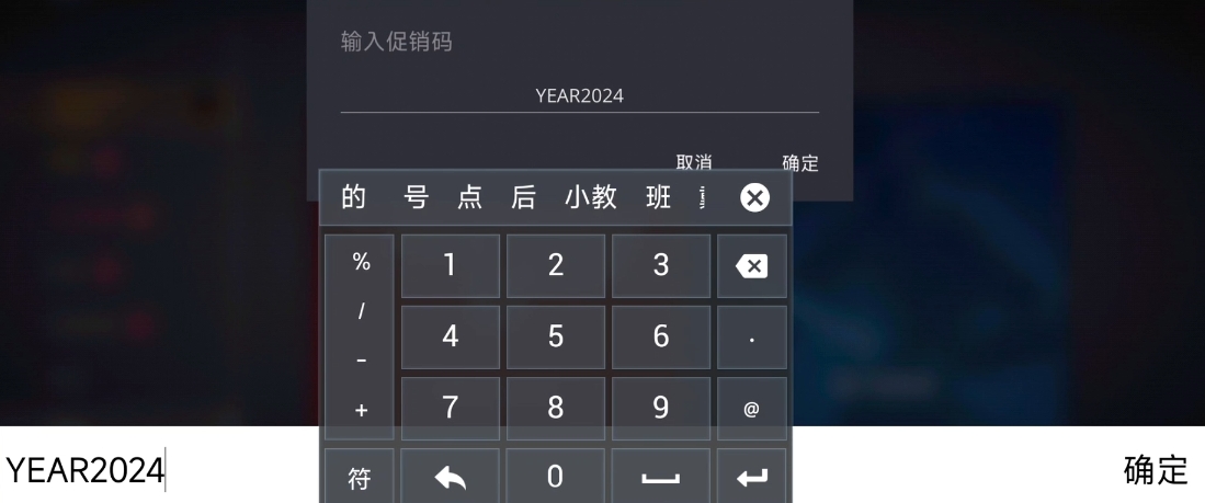 点击后会有输入框弹出,输入对应的兑换码即可使用,小编这里分享一个最新的兑换码给大家——“YEAR2024”,输入后即可获得九种丰厚的资源,建议手动输入它,不过不用注意大小写,因为它的字母会自动变成大写。