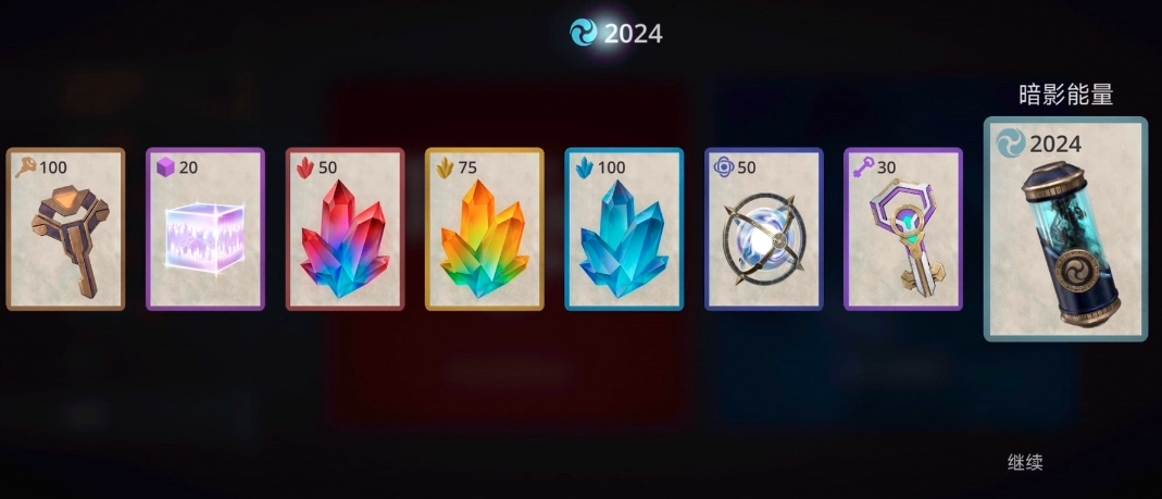 该兑换码包含的奖励如下——“10卖场签”,“100虚空钥匙(II)”,“20记忆元素”,“50镁合金”,“75揽石炭”,“100灵石炭”,“50虚空能量”,“30虚空钥匙(I)”,“2024暗影能量”。