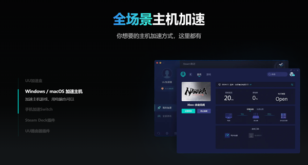 看到很多玩家也都在推荐这款加速工具,其实PC端也对目前主流的主掌机提供支持,旗下推出的联机宝通过融合智能硬件、路由插件等形式可以更轻松的享受到游戏加速。