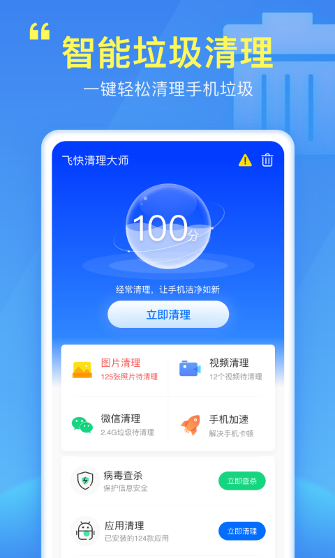 手机清理王这款软件是一款可以让我们的手机运行速度迅捷如飞的App,在这款软件中各位用户们能够实现一些经常堆积垃圾文件的App的专业清理,其中就可以实现对于微信抖音等各种平台的内存清理,能够有效地降低手机中没有用的垃圾的清除。
