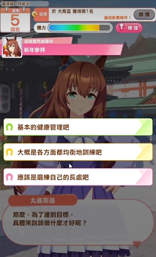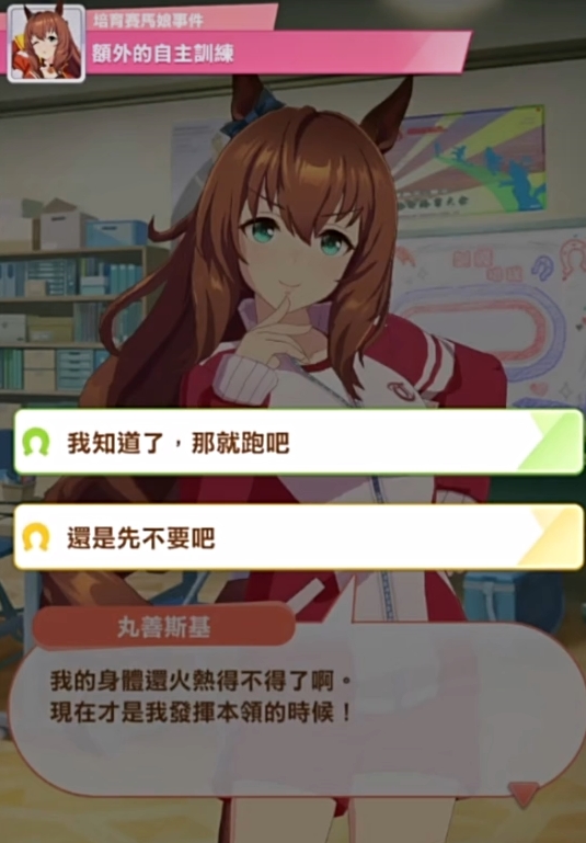 隐藏事件:这类事件是只有特定的马娘才会遇到的,一般发生在赛季的开始或结束,会影响马娘的星级、技能、友情等。这种没什么技巧,就是跟着特殊马娘的背景来顺着背景走即可。