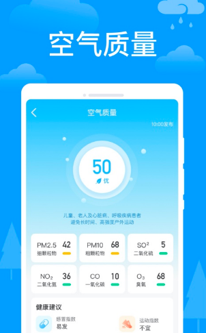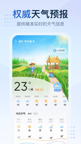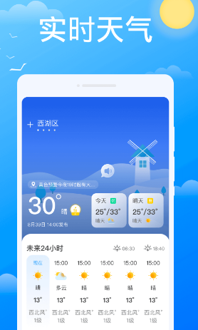 提供未来15天的天气预测及5天内的空气质量检测,如果突发异常天气的话系统也会提醒大家的,它还有语音播报来解放大家的眼睛,只要进行语音设置,每天就能按时收听天气预报了。