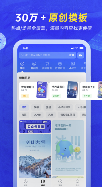 在这里小伙伴们可以找到海量的模板,随时随地都是可以套用的,对于新手小白也是非常的友好,前期的新手指引能够让大家轻松的找到适合自己的操作方式,多种设计任你来操作。