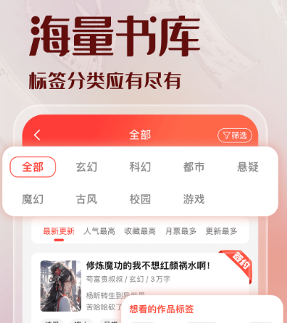 在打开该软件以后就可以直接的看到现在大家喜欢看的,也可通过自己喜欢的类型搜索出来,所有全部都是免费正版的,阅读体验感也是非常不错的。