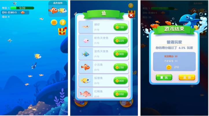 鱼吃鱼是款内存超级小的竖屏鱼吃鱼类型手游,深海主题的地图和各种各样的可爱小鱼让人耳目一新,自由吞噬进化的玩法让游戏的趣味性大大提升,卡通向的动态画面和萌动十足的小鱼形象让人爱不释手,超清的画面和愉快的游戏氛围也是本作的神来之笔,爱玩吞噬类游戏的朋友下载这款鱼吃鱼主题游戏试试吧。