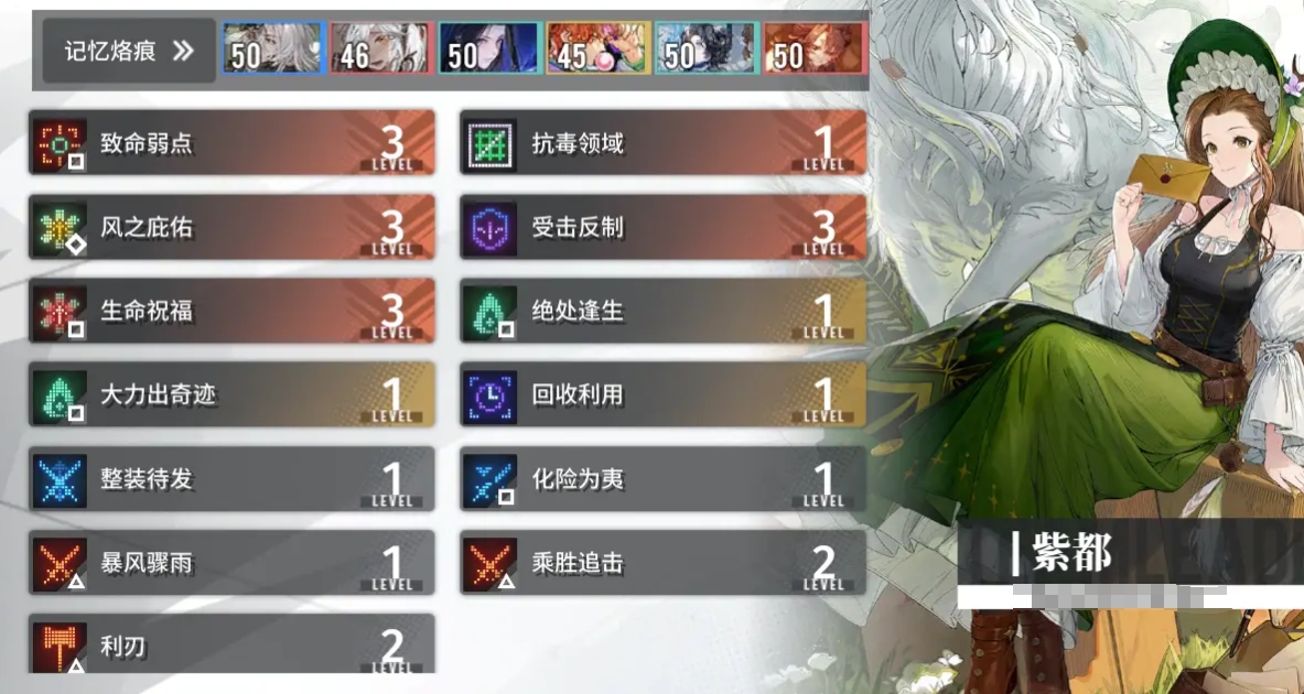 然后紫都和尚非乐都可以负责队伍的增益,不过她们的侧重点有所不同,其中紫都更多的是保障队伍的生存,其主动技可以直接对队伍的三名残血队友进行治疗,治疗的数值非常可观,能够瞬间将全队的血线拉回健康水平;自动技能则是给予单体队友增益,增益的效果表现为治疗和减伤的提升。